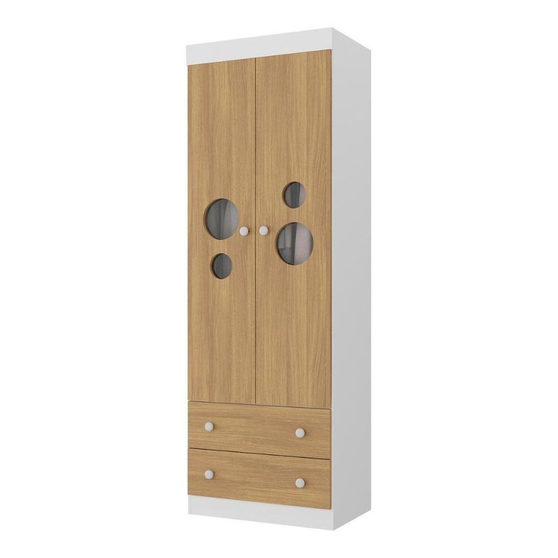 Guarda-roupa Infantil 62cm 2 Portas Com Vidro E 2 Gavetas Pirulito Multimóveis MP4466 Branco/madeirado