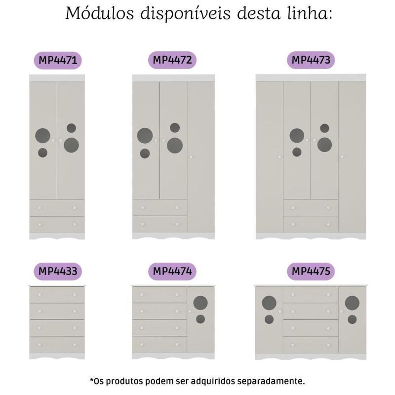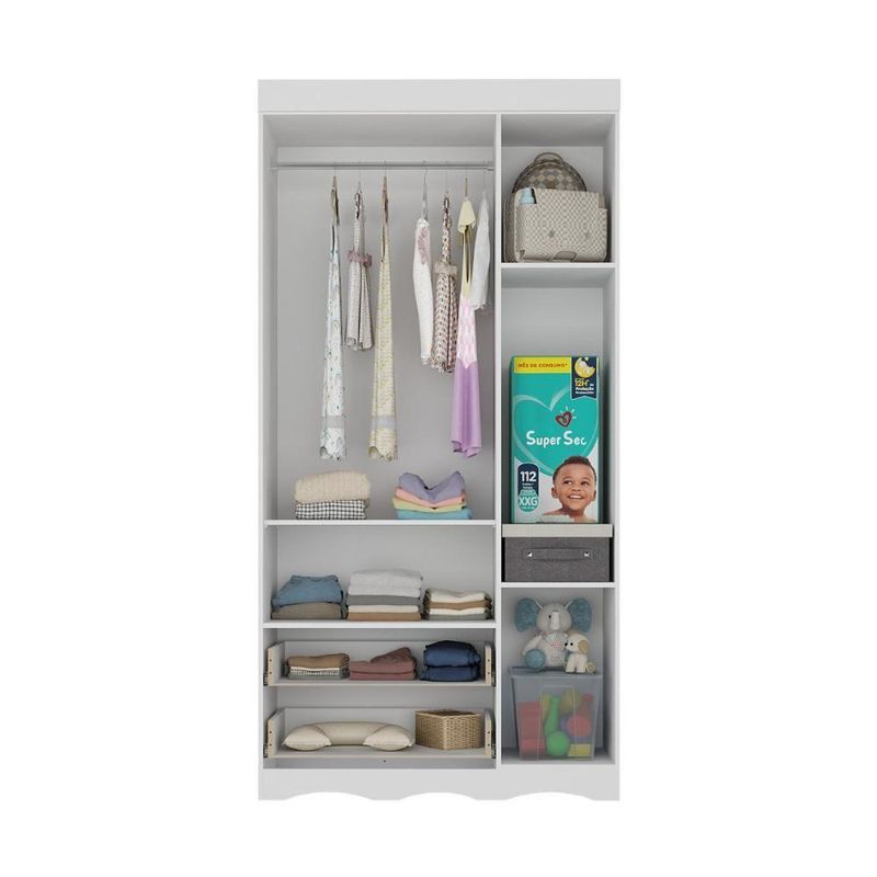 - 3 portas e 2 gavetas (frontais em MDF): amplo espaço interno para organizar roupinhas e acessórios.