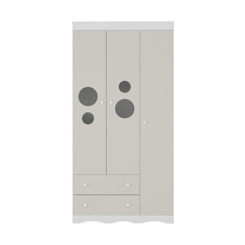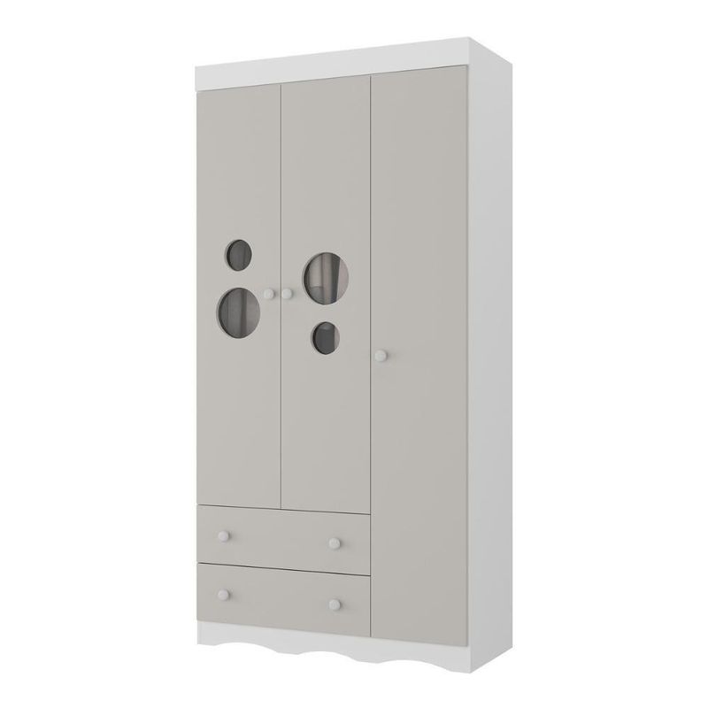 Guarda-roupa Infantil 92cm Com Vidro 3 Portas E 2 Gavetas Sonho Multimóveis MP4472 Branco/off White