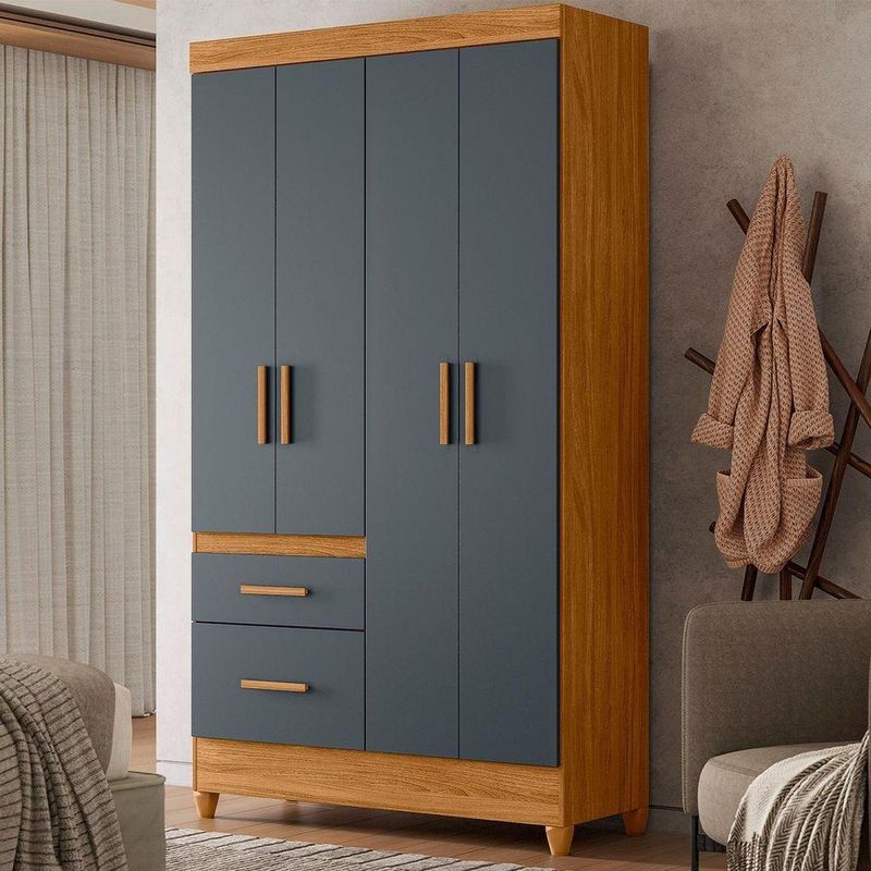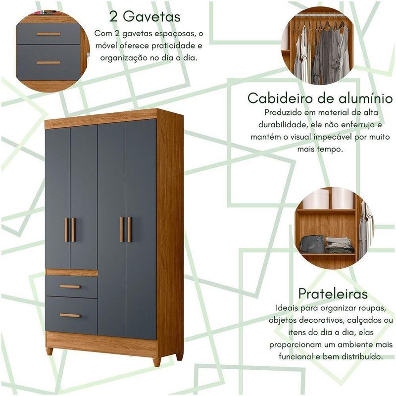 Guarda-roupa Madri Pequeno Quarto 4 Portas 2 Gavetas Freijo Com Cinza