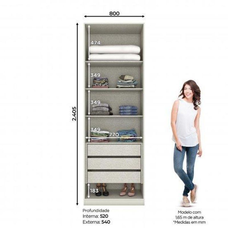 Tamanho do Produto (L x A x P): 80 x 240,5 x 54 cm