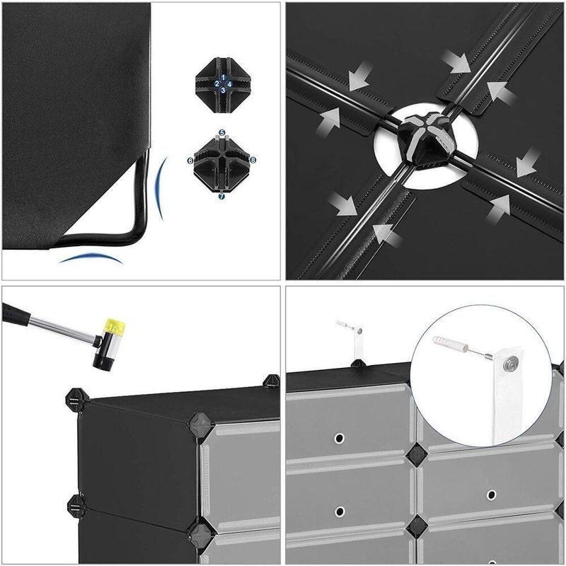Guarda Roupa Modular 4 Prateleiras Sapateira Organizador Portatil Brinquedos Armario Com Porta Luxo Preto