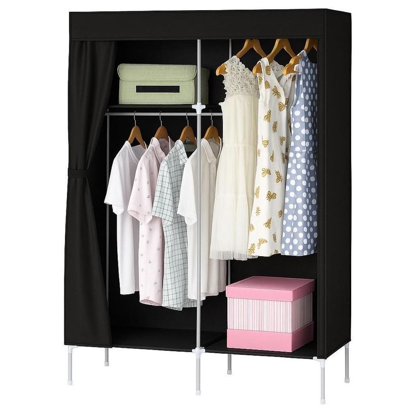 Guarda Roupa Portatil Cabideiro Prateleira Mini Sapateira Organizador Caixas Camping Armario Preto