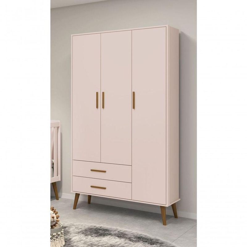 Guarda-roupa Retrô 3 Portas Isis Rosa Fosco - Moveisaqui