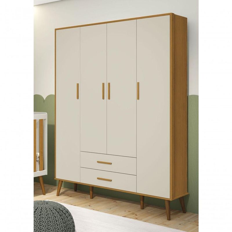 O Guarda-Roupa Retrô 4 Portas Isis - MóveisAqui introduz um estilo retrô com os pés em madeira maciça, apresenta um desing clean que combina com vários estilos de decoração. Possui um espaço amplo e com divisórias internas para que as roupinhas do bebê possam ser organizadas e armazenadas com comodidade,puxadores em MDF envelopado.Dimensões do Produto Montado:Altura: 205 cmLargura: 148 cmProfundidade: 41 cmObservações:- 04 Portas;- 02 Gavetas;- Cabideiro Metálico;- Corrediças Telescópicas;- Sistema anti Tombamento;- Puxadores em MDF;- Pés na cor Madeira;- Pintura ultravioleta com acabamento fosco.