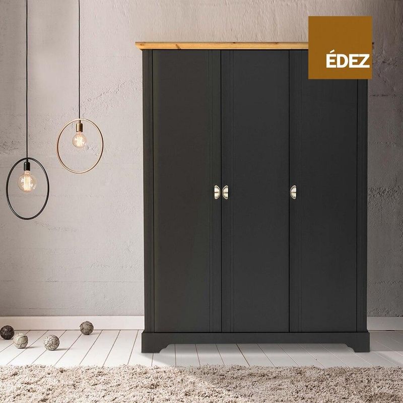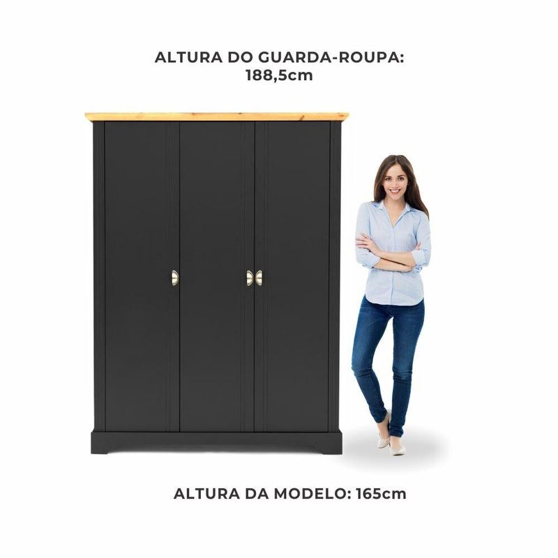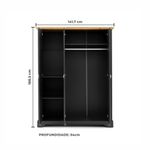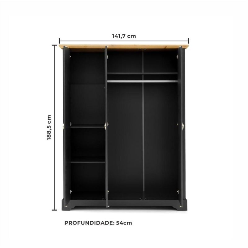 GUARDA-ROUPA RETRÔ ÉDEZ MOSCOW, 3 PORTAS, MADEIRA MACIÇA, GRAFITE O guarda-roupa Retrô de três portas Édez Moscow é perfeito para quem procura algo com dimensões reduzidas e muito espaço interior, seja um quarto principal ou um quarto de hóspedes. Dentro há um cabideiro de alumínio, 4 prateleiras, 3 laterais e 1 superior.
