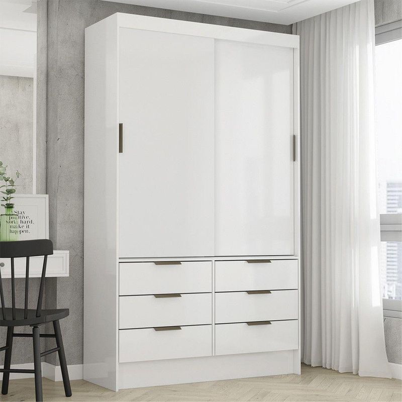 Guarda Roupa Sevilha 2 Portas De Correr 6 Gavetas Carioca Móveis Branco