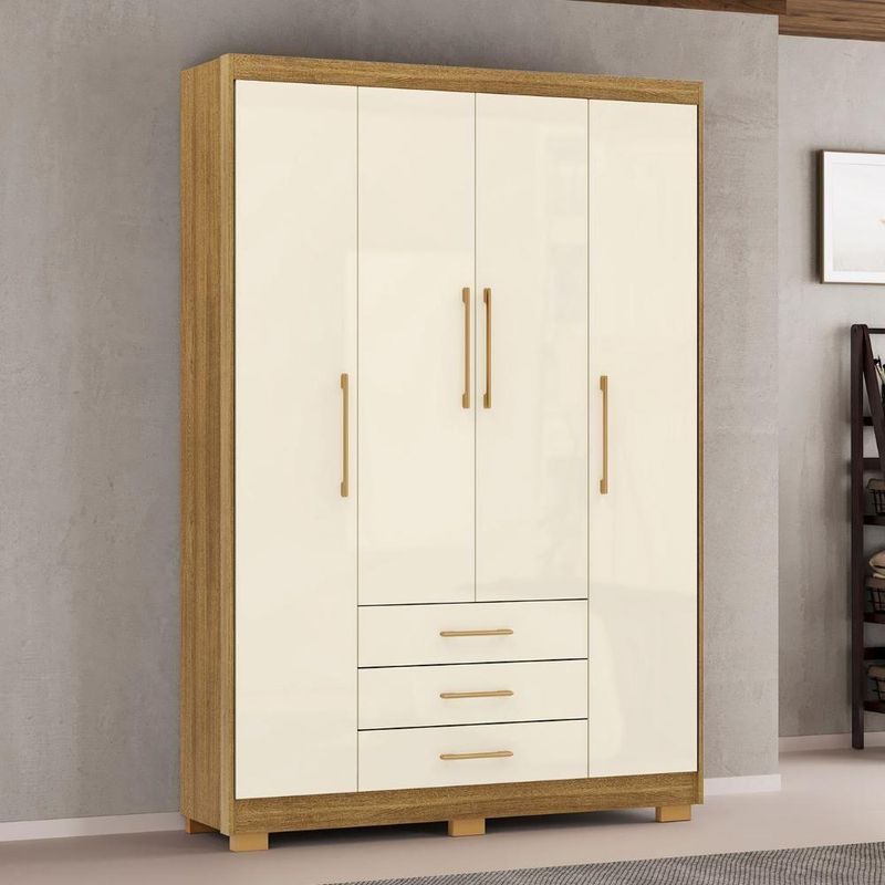 Guarda Roupa Solteiro 150cm 4 Portas Otto Nature/Champanhe V02 - Mpozenato