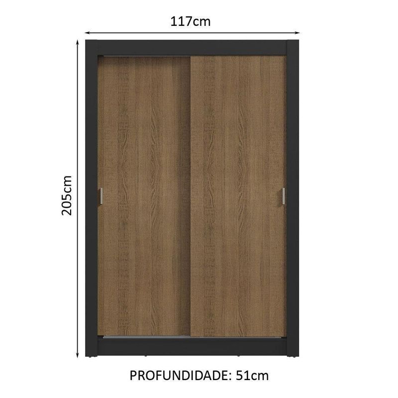 Guarda-roupa Solteiro 2 Portas De Correr Preto/rustic Milano Madesa Preto/rustic