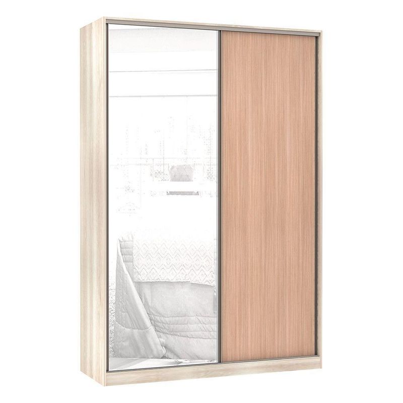Guarda-roupa Solteiro Luciane 2 Portas De Correr 3 Gavetas Prime Plus Alumínio Com Espelho 160 Cm Cumaru