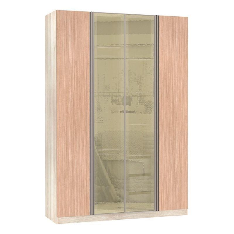 Guarda-roupa Solteiro Luciane 4 Portas 3 Gavetas Prime Plus Alumínio Com Vidro Reflecta Legno Crema Com Cumaru
