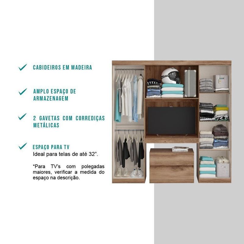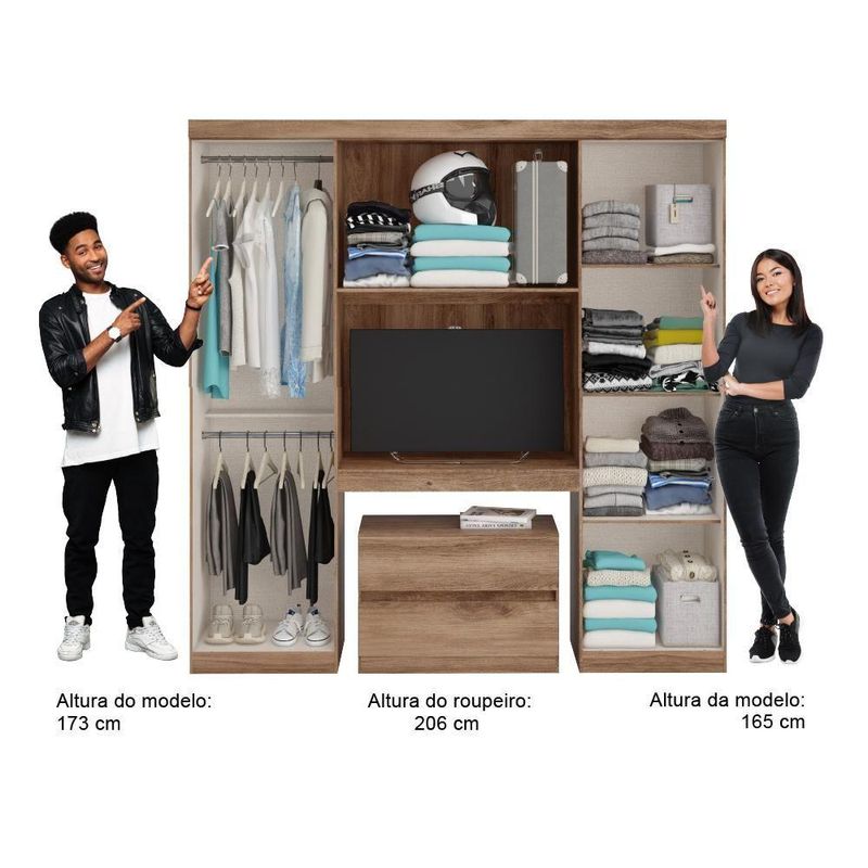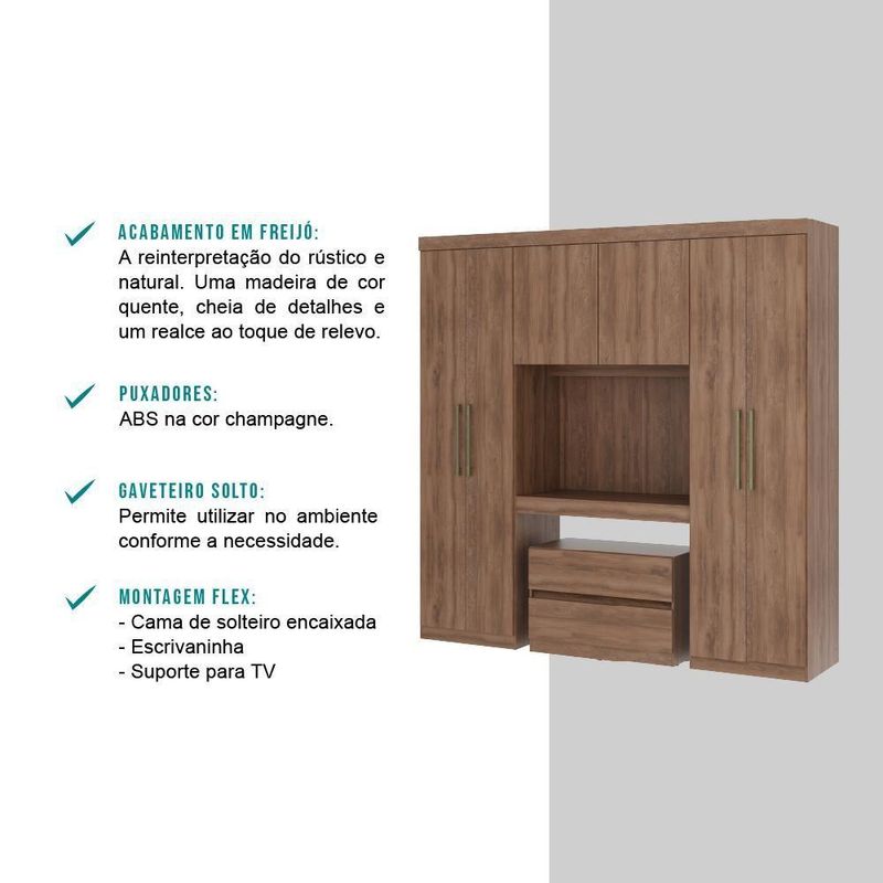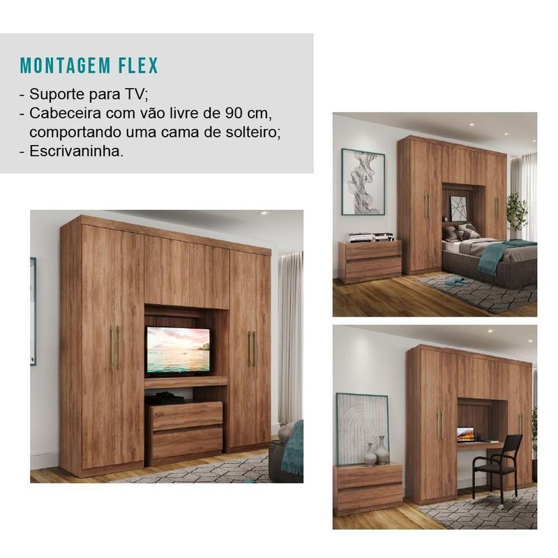 Guarda Roupa Solteiro 6 Portas 2 Gavetas Porto Carraro Freijó