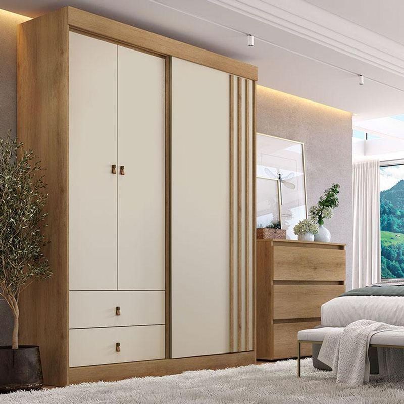 Guarda Roupa Solteiro Aspen 3 Portas Capuccino Off White Acetinado - THB