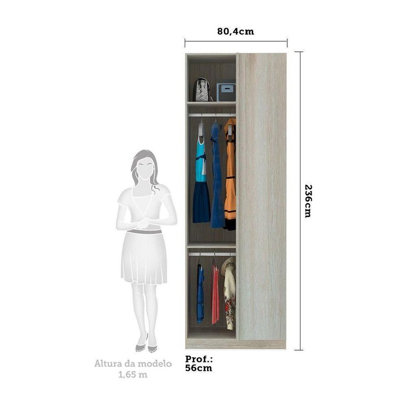 Guarda-Roupa Solteiro Luciane Canto Reto Direito e Esquerdo Prime Plus 1 Porta 80 cm