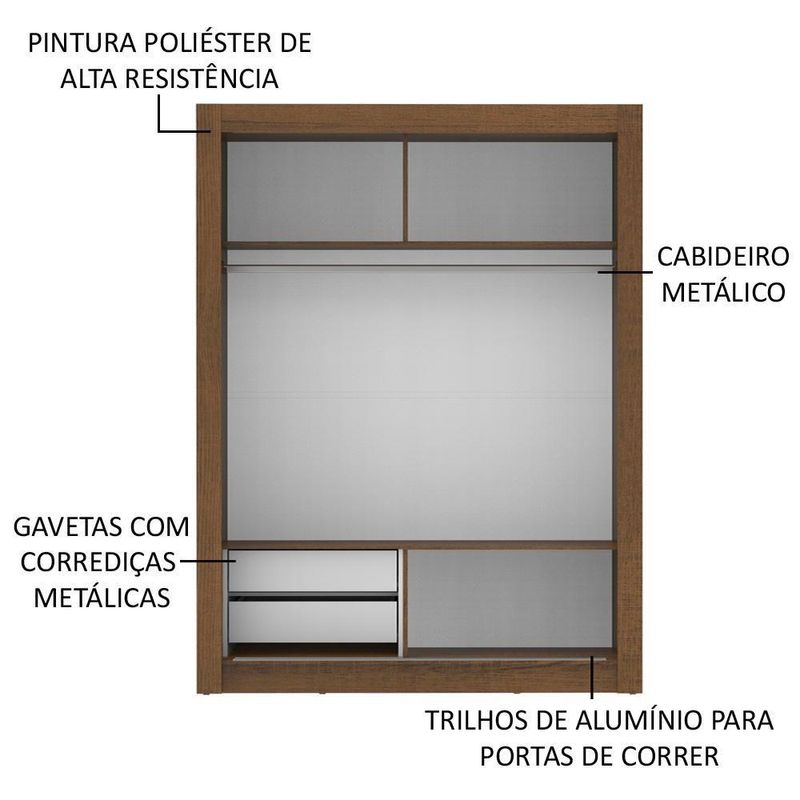 Guarda-Roupa Solteiro Dallas 2 Portas de Correr MadesaCaracterísticas do Produto:
