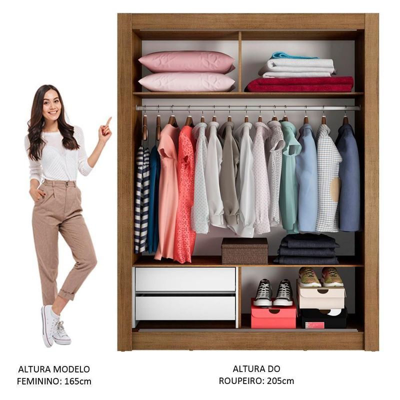- Contempla duas gavetas com corrediças metálicas, duas prateleiras e três nichos, além de um cabideiro de metal resistente e de tamanho diferenciado.