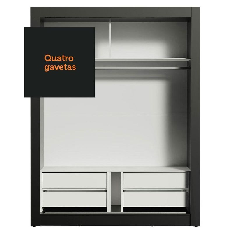 Um dos grandes diferenciais deste modelo são as quatro gavetas, que possuem corrediças metálicas e proporcionam uma ótima organização de roupas, acessórios e o que mais você preferir.