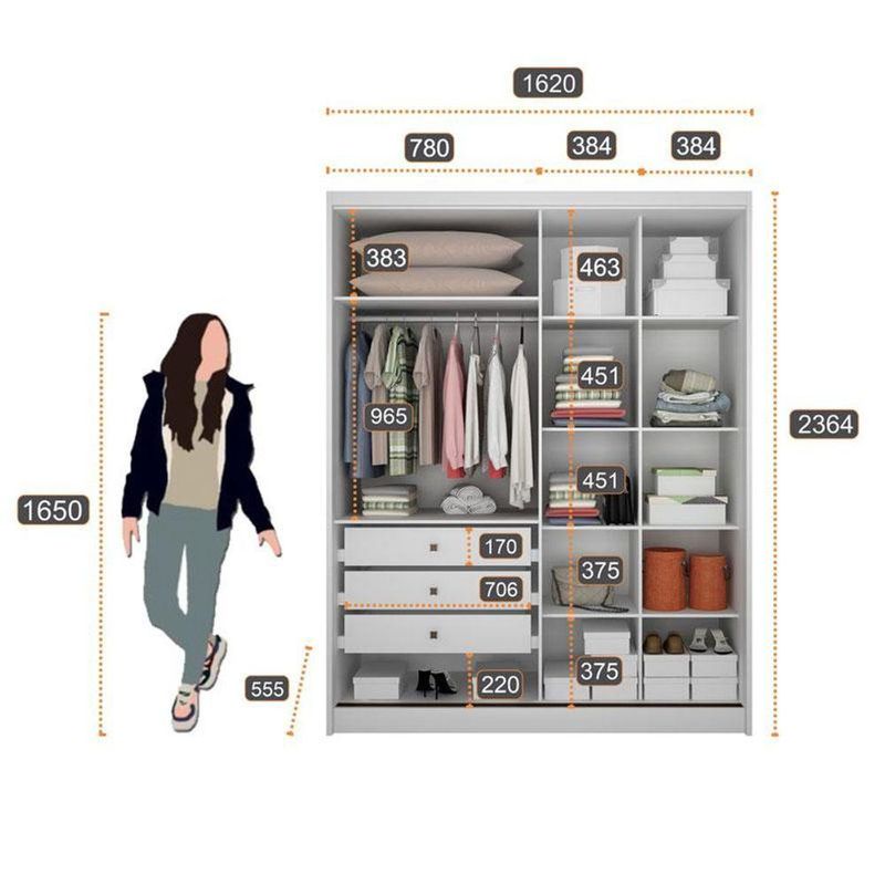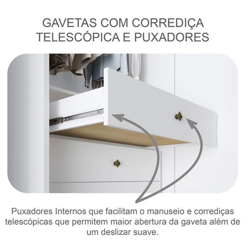 Guarda Roupa Solteiro Dante Com Nicho E Espelho E Gaveteiro Milão Com Chave Neve - Novo Horizonte