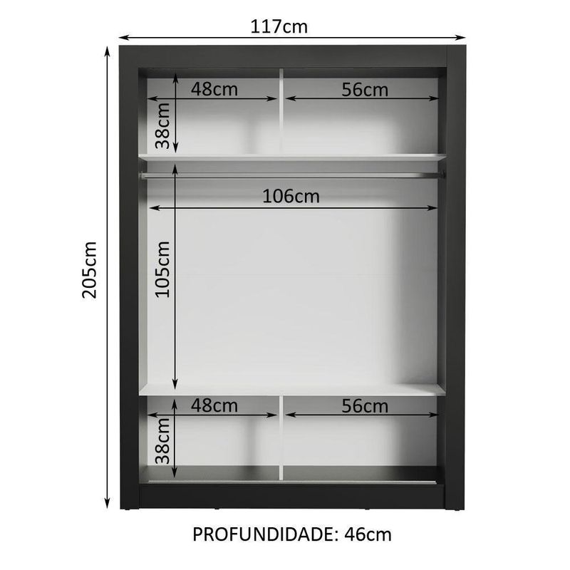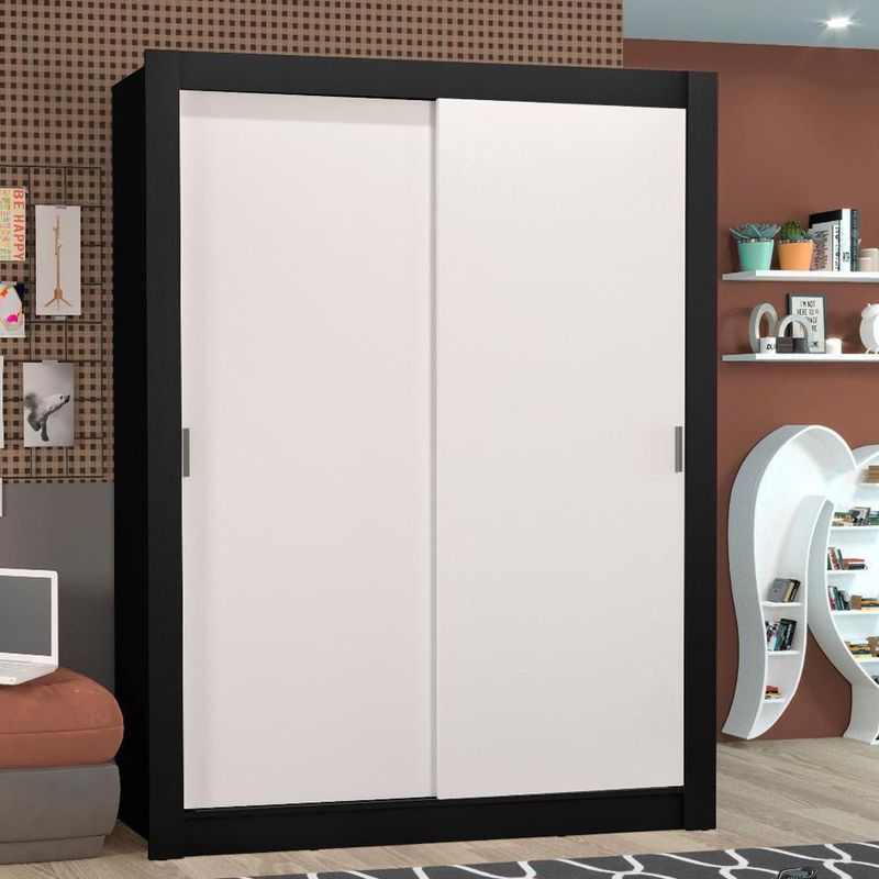 Guarda-roupa Solteiro Denver 2 Portas de Correr MadesaCor: Preto/branco