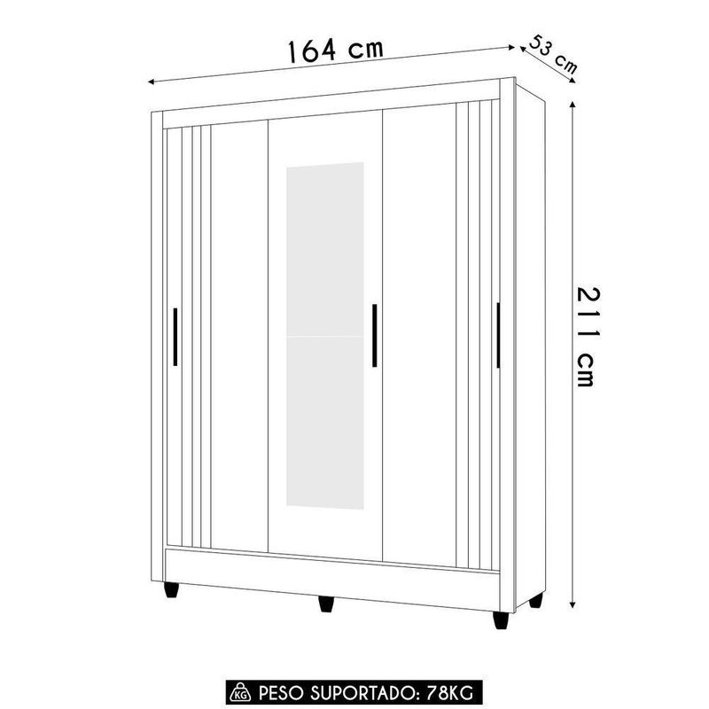 As três portas deslizantes, com trilho de alumínio, garantem um uso suave e sem ocupar o espaço de circulação, elas ainda apresentam detalhes em frisos de baixo relevo, que adicionam um toque de modernidade ao produto. Seu interior é projetado para oferecer excelente repartição, com três prateleiras para acomodar seus itens de maneira prática e organizada. Ele conta com dois cabideiros e um calceiro em alumínio, ideais para pendurar roupas de forma eficiente, além de duas gavetas com corrediças metálicas para acessórios, roupas dobradas, dentre outros objetos, e uma área adicional para guardar calçados. O Espelho presente na porta central proporciona utilidade e estilo, servindo para conferir o visual antes de sair e ainda cria uma sensação de amplitude no ambiente. Os puxadores em MDF conferem delicadeza e sofisticação ao design do Guarda Roupa Solteiro, enquanto os pés em PVC facilitam a limpeza, mantendo tudo sempre impecável. Com estrutura em MDP/MDF de 12/15mm e acabamento em pintura UV, esse Roupeiro une beleza, resistência e organização, sendo a escolha ideal para otimizar e agregar funcionalidade ao seu Quarto. Não perca a oportunidade de transformar seu espaço com este móvel completo e versátil.