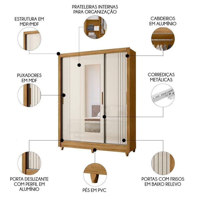 Guarda Roupa Solteiro Espelho 3 Portas Viena M07 Freijó/off - Mpozenato