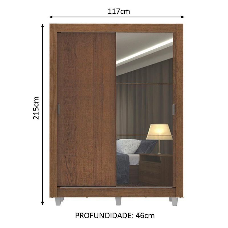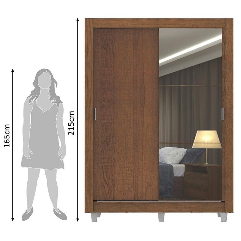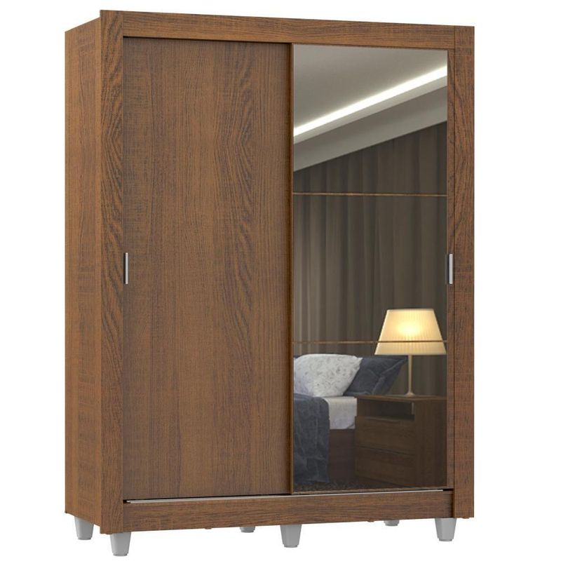 Guarda roupa Solteiro Madesa Denver 2 Portas De Correr com Espelho com PésGuarda-Roupa com duas portas de correr de deslizamento suave, trilhos em alumínio, dobradiças metálicas e ferragens de qualidade que proporcionam melhor sustentação ao móvel. Contempla duas prateleiras e quatro nichos, além de um cabideiro resistente e de tamanho diferenciado, 105 cm.Pensado na medida certa para quarto de solteiro, possui acabamento no padrão amadeirado Rustic nas portas e na estrutura interna e externa. As costas possuem acabamento branco. O processo é feito em Pintura Poliéster de alta resistência, que confere maior qualidade e durabilidade ao produto. Neste modelo, possui pés reguláveis em PVC que conferem beleza e uma melhor sustentação.Especificações Técncias