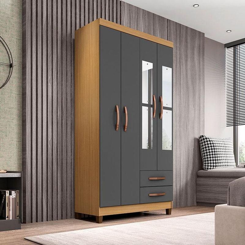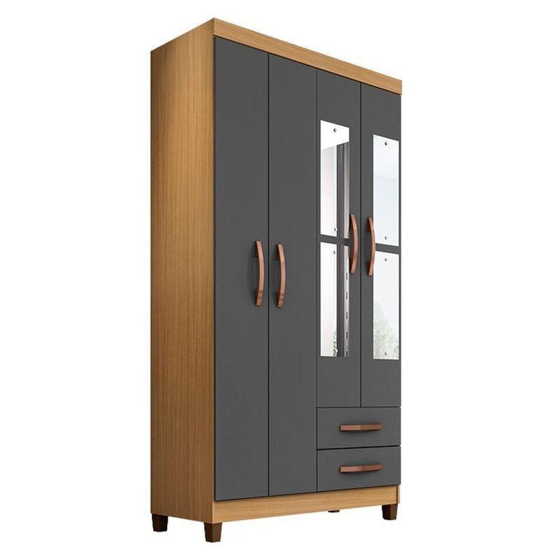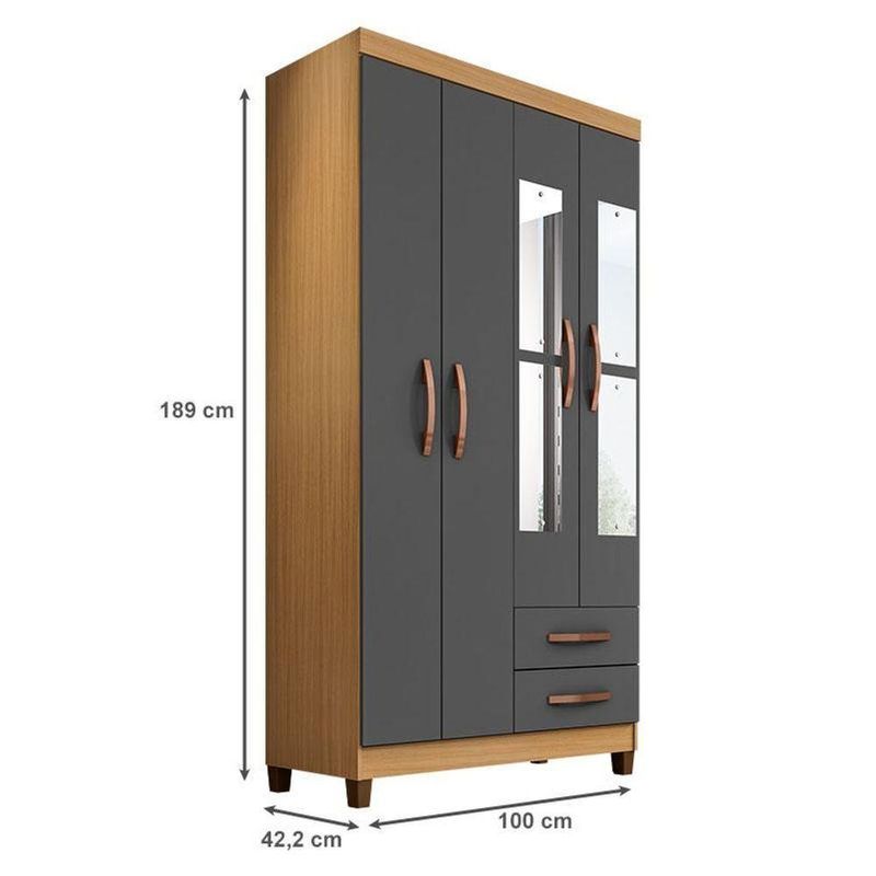 Guarda Roupa Solteiro Mogi Com Espelho 4 Portas Carvalho Americano Grafite - Incorplac