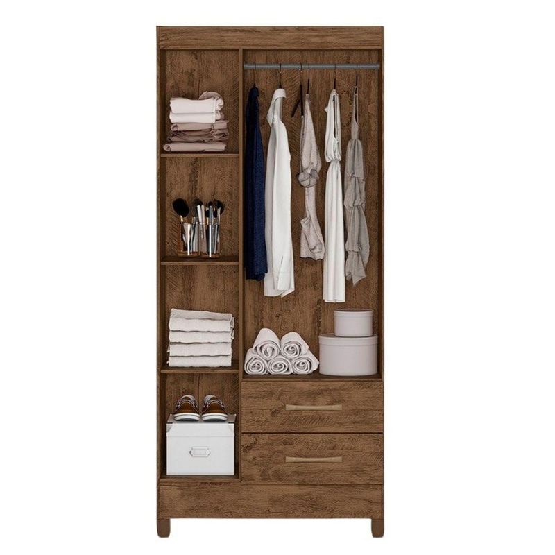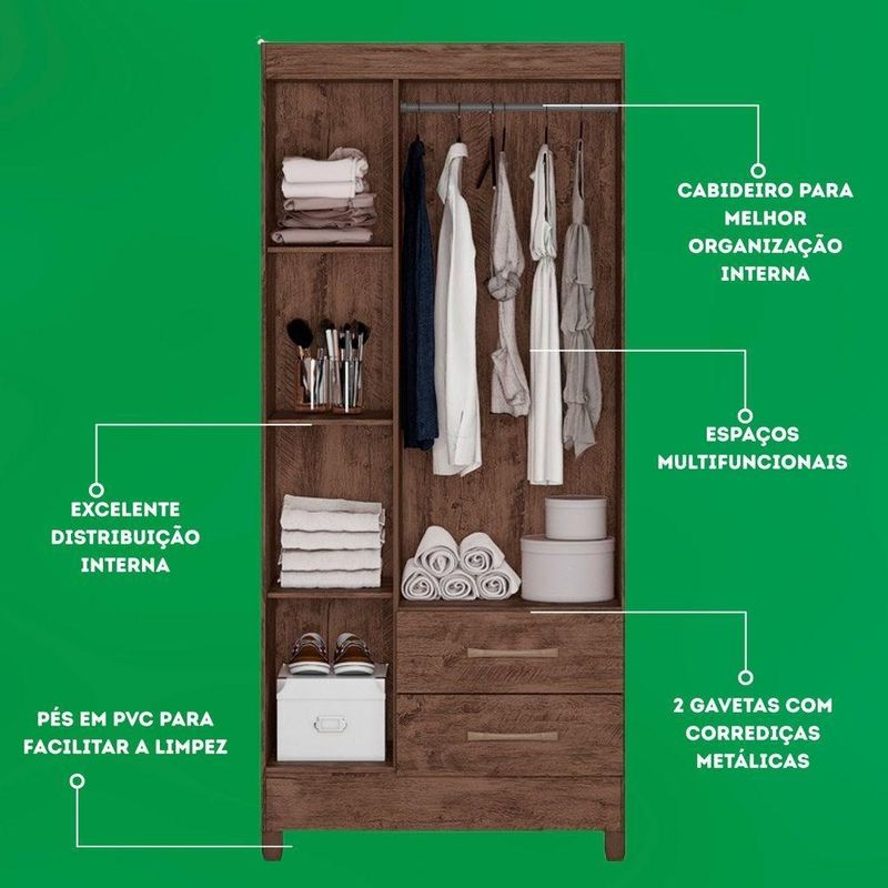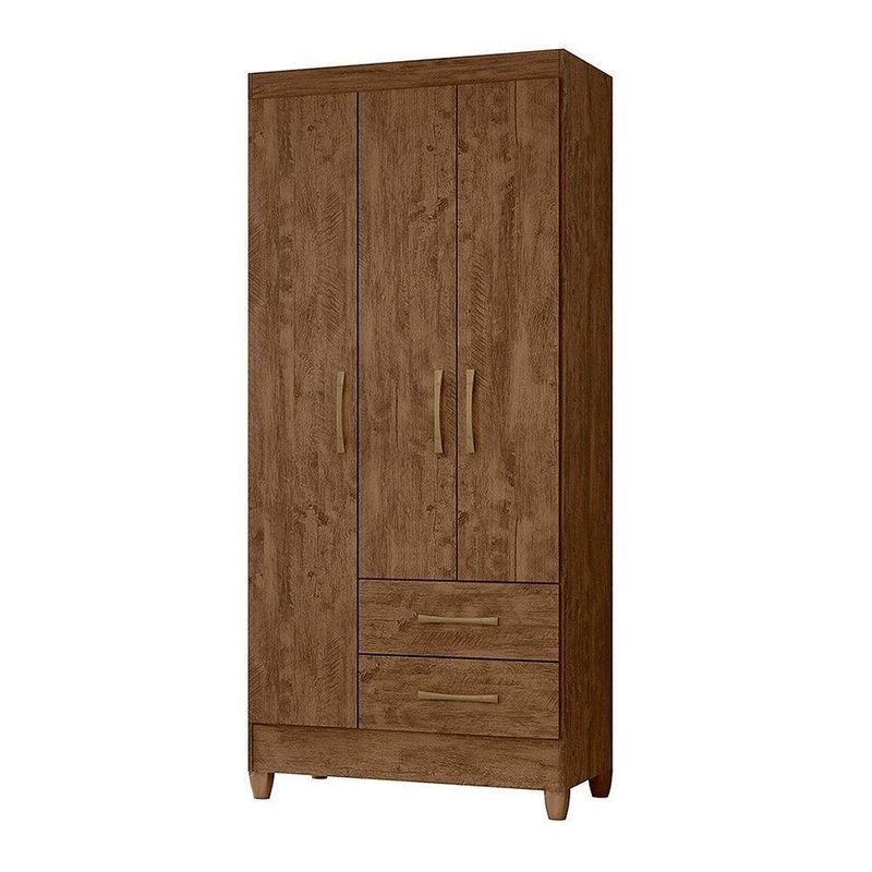 Guarda Roupa Solteiro Quarto Pequeno 3 Portas 2 Gavetas Lima Castanho