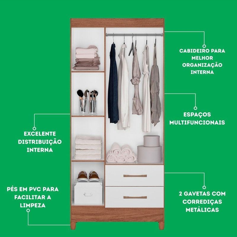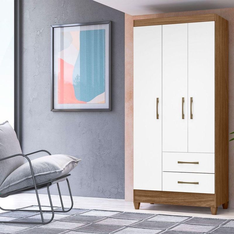 Guarda Roupa Solteiro Quarto Pequeno 3 Portas 2 Gavetas Lima Naturale Com Branco