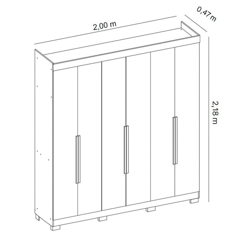 O Guarda-Roupa Vinci une design moderno, praticidade e excelente qualidade de acabamento. O modelo oferece resistência e durabilidade superiores, mantendo um visual sofisticado que valoriza qualquer ambiente.Seu interior é amplo e bem distribuído, com prateleiras, cabideiros e gavetas que facilitam a organização das roupas e acessórios.As portas de abrir garantem total acesso ao espaço interno, enquanto o acabamento refinado confere um toque elegante e contemporâneo ao quarto.Dimensões:Altura: 218cmLargura: 200cmProfundidade: 47cmObservações:- Portas de abrir com dobradiças metálicas resistentes- 3 Gavetas internas com corrediças telescópicas- Amplo espaço interno com prateleiras e cabideiros bem distribuídos- Acabamento moderno e resistente- Design elegante e funcional- Puxador de MDF revestido- Puxadores em alumínio