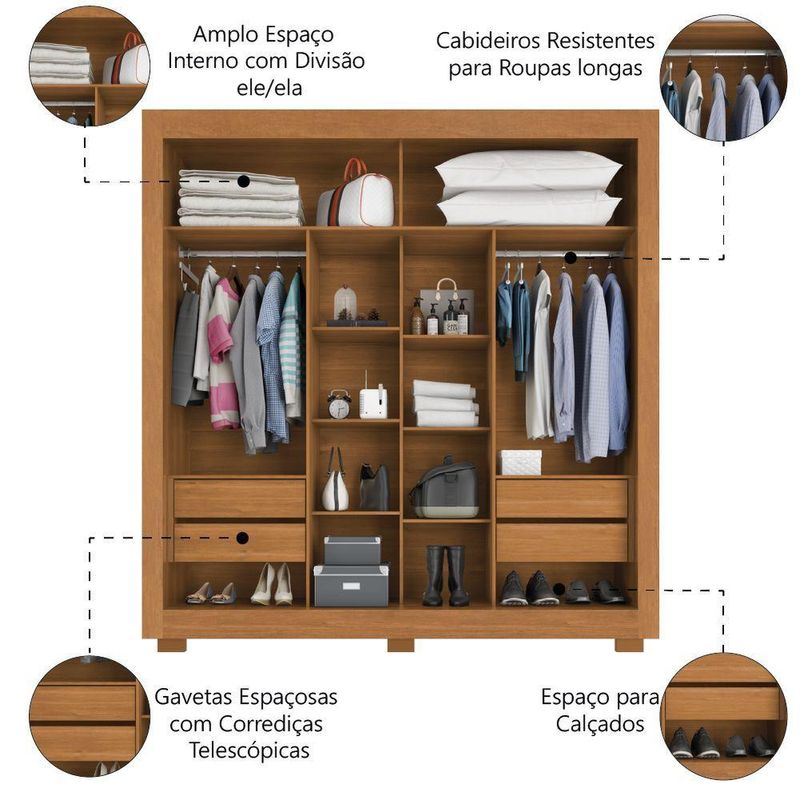 Guarda Roupas Casal 2 Portas De Correr 4 Gavetas Titanium Zanzini Areia/madeirado
