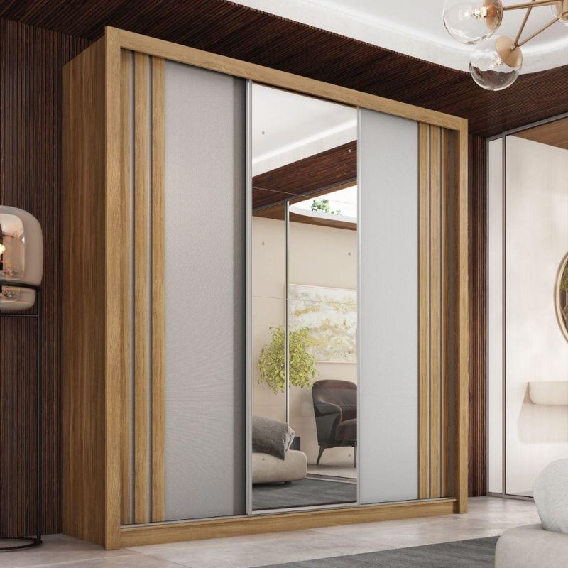 Guarda Roupas Casal Com Espelho 3 Portas De Correr 2 Gavetas Moema Flex Madeirado/off White/black