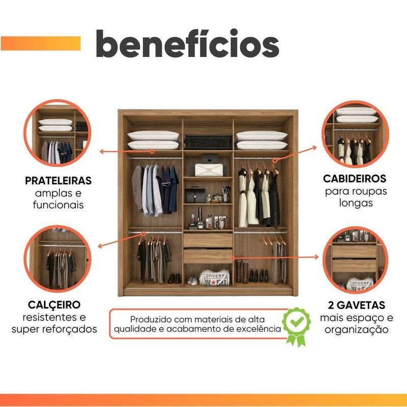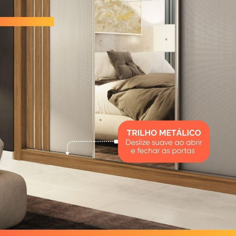 MODELO: Guarda Roupas Casal com Espelho 3 Portas de Correr 2 Gavetas Moema Flex