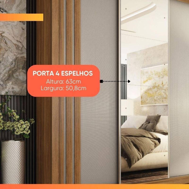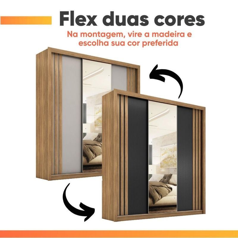 DIFERENCIAL: Possui um amplo espelho na porta central e sistema flex, permitindo escolher a cor das portas no momento da montagem.