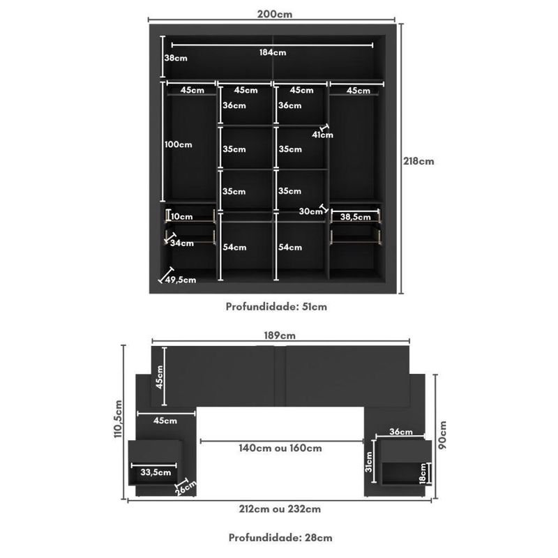 Descrição do Tamanho: (L x A x P): 200 x 218 x 51 cm