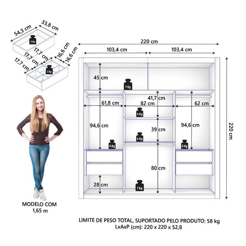 Certifique-se de tudo antes de finalizar a compra, evitando assim futuros desagrados ou imprevistos com a entrega. MEDIDAS:: [ A ] = 220 cm [ L ] = 220 cm [ P ] = 52,8 cm | PESO:: 151 kg | PESO SUPORTADO:: 44 kg | GAVETAS SUPORTAM ATÉ:: 3 kg | PRATELEIRAS SUPORTAM ATÉ:: 4 kg | CABIDEIRO SUPORTA ATÉ:: 5 kg | MODELO:: Guarda Roupas Casal Ripado 2 Portas de Correr 4 Gavetas Trianon | MARCA:: Zanzini | TIPO DE PINTURA:: Semi Fosco | ACABAMENTO:: UV Verniz | MATERIAL:: MDP | ESPESSURA DO MATERIAL:: 12mm | PORTAS:: 2 (Portas de correr) | GAVETAS:: 4 | PRATELEIRAS:: 2 | QUANTIDADE DE CABIDEIRO:: 3 | CABIDEIROS:: Metálicos | CORREDIÇAS:: Telescópicas | PUXADOR:: MDF | GARANTIA:: 3 Meses | DIFERENCIAL:: Porta de correr com batentes e Ripado, corrediça telescópicas proporcionando deslize suave. | SISTEMA DE MONTAGEM:: Parafusos auto atarraxantes, cola, cavilhas, pregos | AVISO:: A Esplanada Móveis se responsabiliza pela entrega dos produtos adquiridos até a porta de entrada ou portaria do endereço indicado, se a portaria do condomínio permitir, as entregas são efetuadas no piso térreo e é de responsabilidade do cliente. | MATERIAIS DA ESTRUTURA: MDP | LARGURA: 220 | ALTURA: 220 | PROFUNDIDADE: 52,8 | COR: MADEIRADO Cor: madeirado
