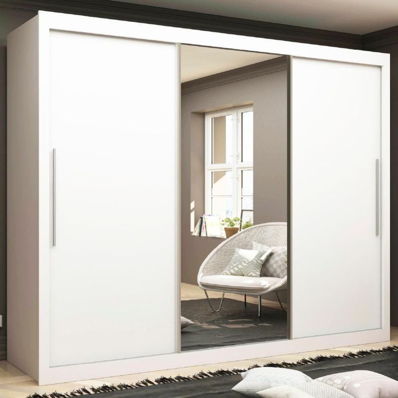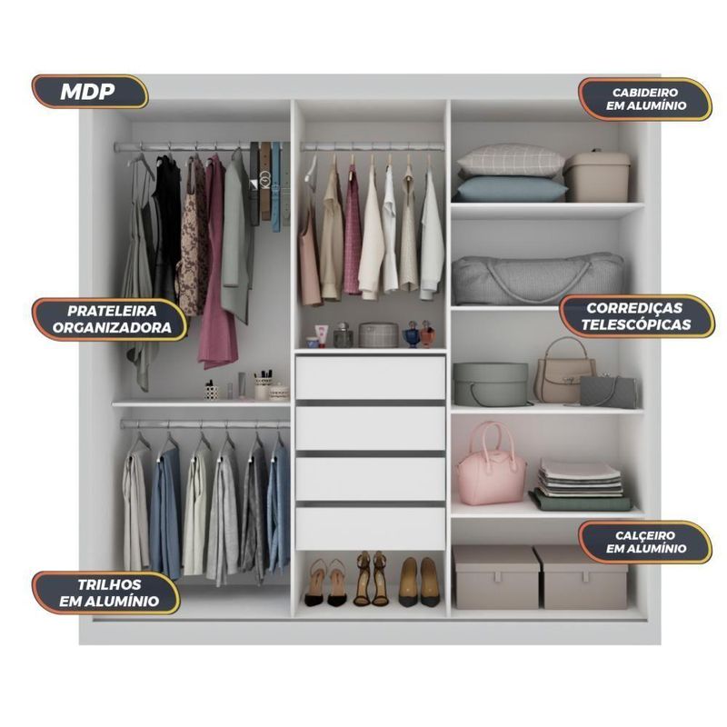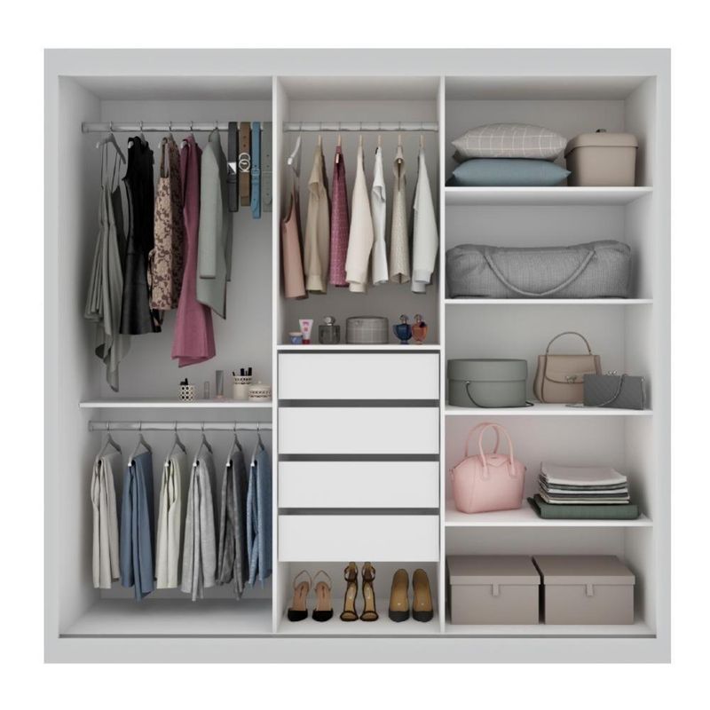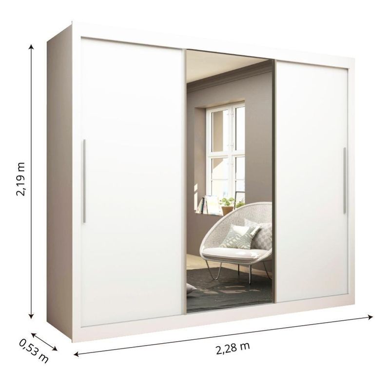 Guarda Roupas De Casal Com Espelho Real Gelius Branco Branco