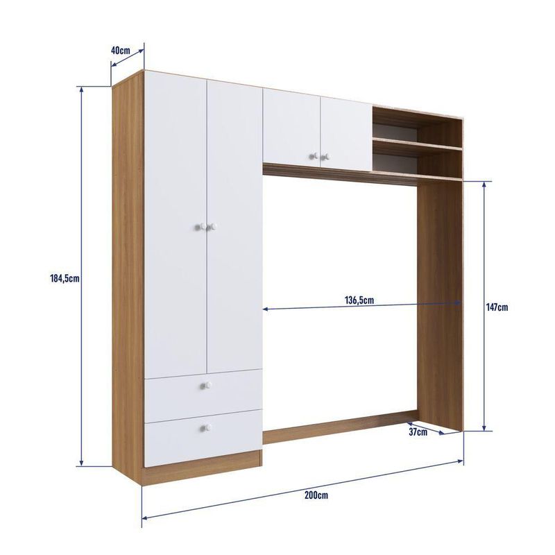 Composto por 4 portas e 2 gavetas, oferece amplo espaço para armazenar roupas, acessórios e brinquedos. As 5 prateleiras internas e o cabideiro facilitam a organização, enquanto as corrediças metálicas nas gavetas garantem maior durabilidade e facilidade no uso diário.