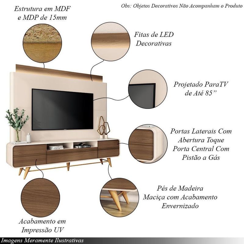 Home Theater Decorativo Majestade C/led Para Tv Até 85 Polegadas Off White/castanho G26 - Gran Belo