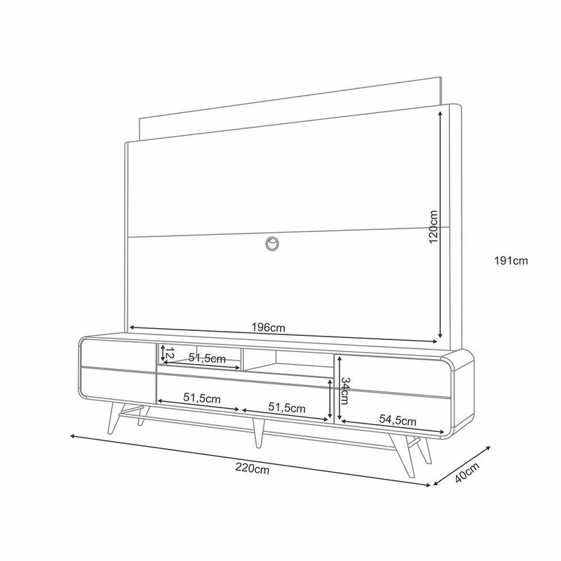 O Home Theater Decorativo Majestade é um móvel sofisticado e funcional, ideal para TVs de até 85 polegadas. Seu design conta com cantos arredondados e iluminação LED integrada, que destaca a decoração do ambiente. As portas laterais possuem sistema de abertura fecho toque, proporcionando um visual moderno e prático. A porta central conta com dobradiças metálicas e pistão a gás para um fechamento suave. Os filetes decorativos dourados e os pés de madeira maciça torneados com acabamento envernizado adicionam elegância ao móvel. Produzido em MDP e MDF de 15mm, é a escolha perfeita para quem busca um móvel que combine funcionalidade, estilo e qualidade. Com amplo espaço e estrutura robusta, oferece suporte para TVs de até 85” e ainda otimiza seu ambiente com beleza e praticidade. Dimensões do Produto: