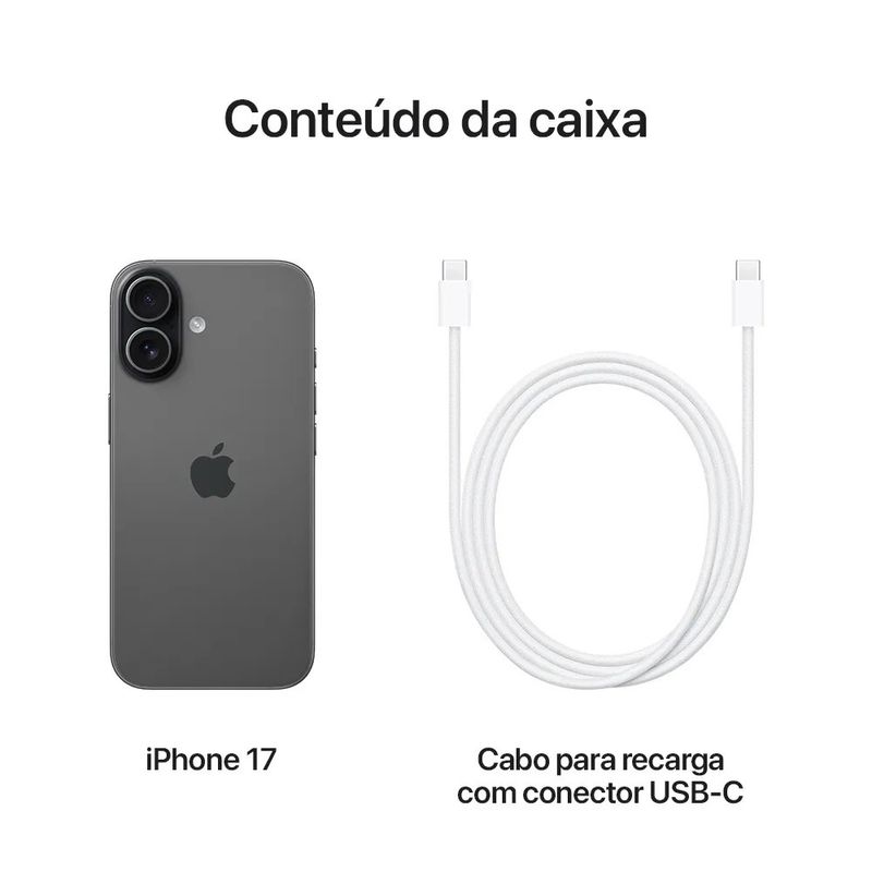 iPhone 17 Apple (512GB) Preto: Tela Super Retina 6,3", 5G e Câmera de 48MP