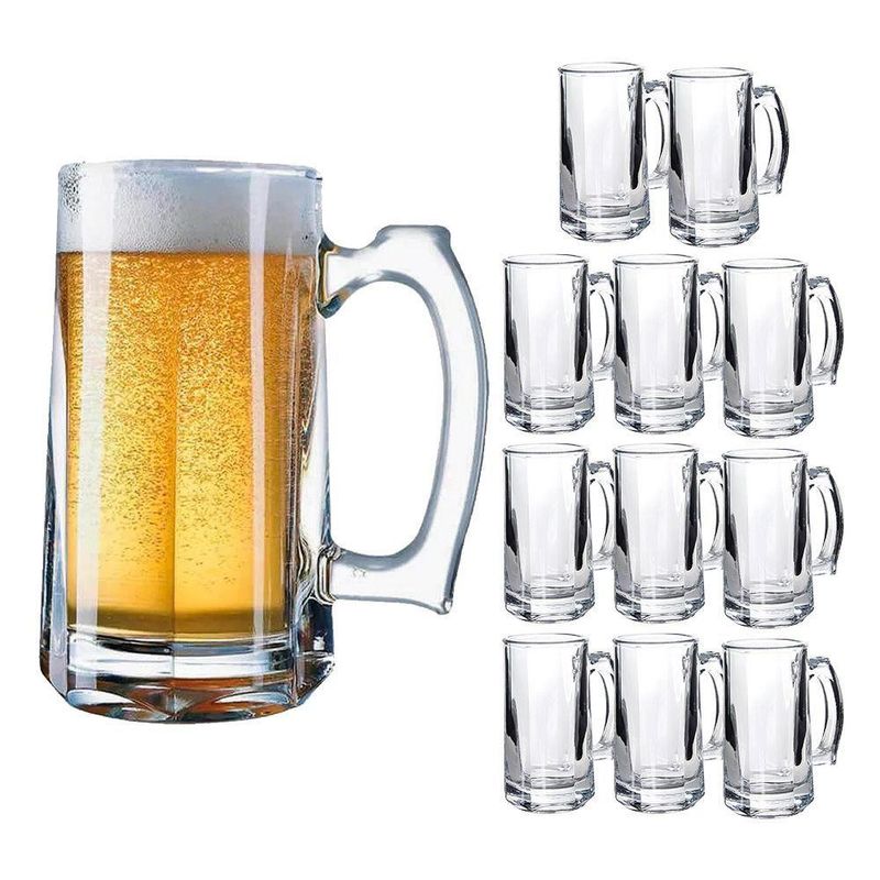 Jogo 12 Caneca De Chopp Zero Grau Vidro Transparente Casual Resistente Bar 380ml Class Home