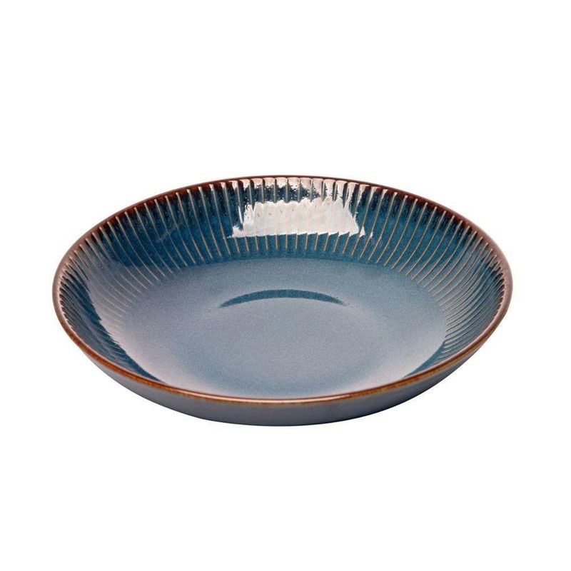 Jogo 2 Prato Fundo De Massas Cerâmica Linear Azul Premium 23cm Lyor