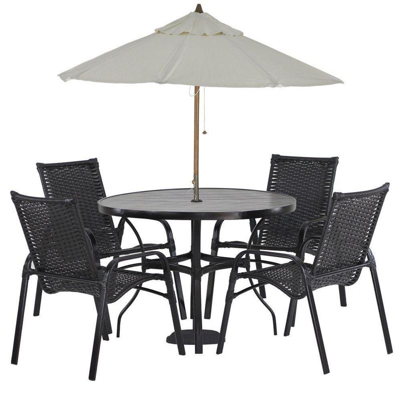 Jogo 4 Cadeiras Emily E Mesa Com Ombrelone Trama Original Tabaco
