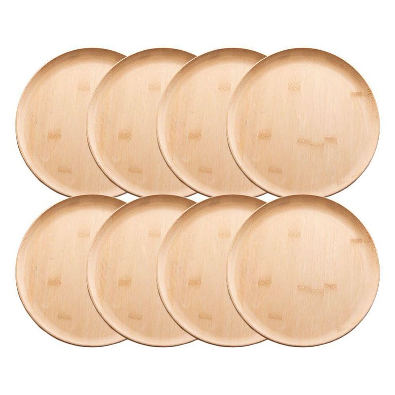 Jogo 8 Prato De Sobremesa Pratinho Bambu Natural Ecológico Lyor 18x18cm