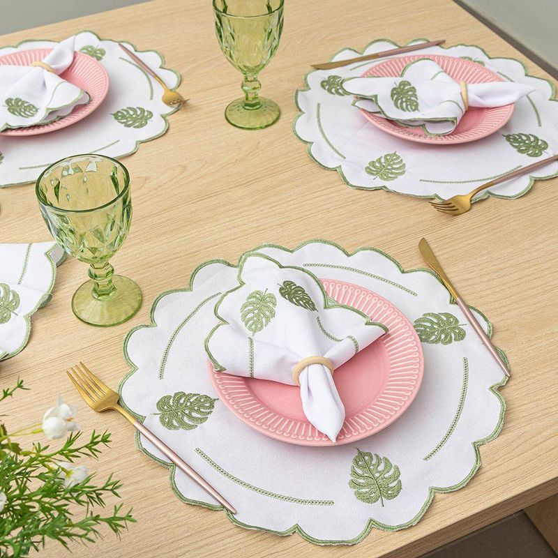 Jogo Americano Bordado 12 Peças Costela De Adão - 100% Poliéster