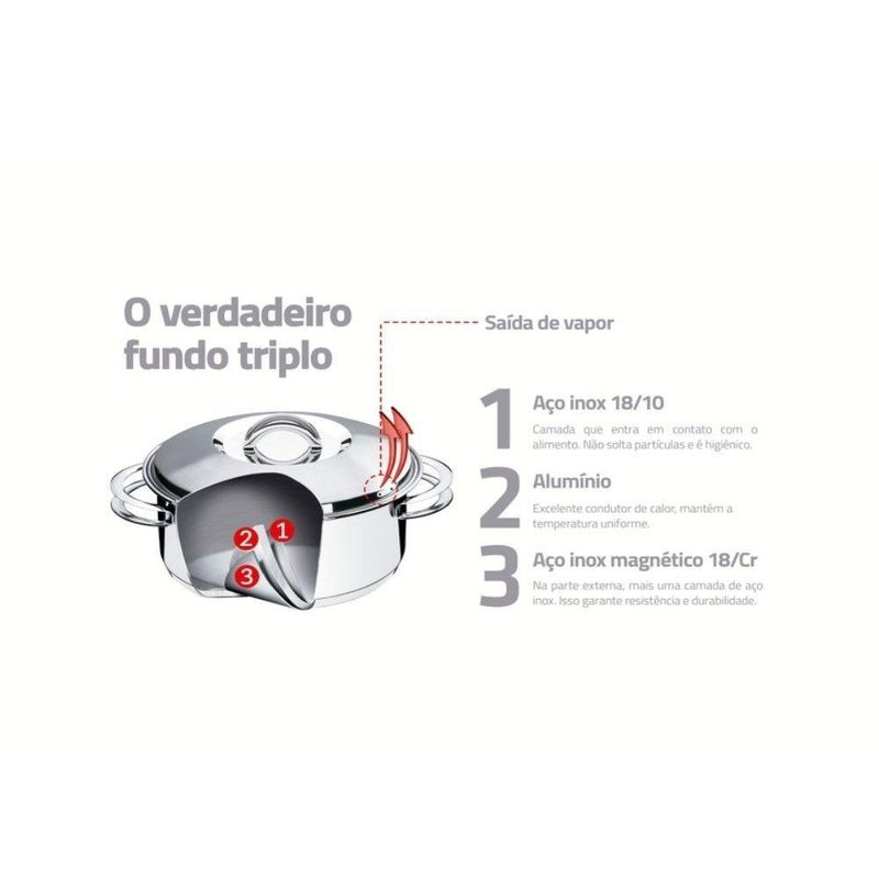 Jogo De Caçarola Rasa + Cozi-vapore Solar 24 Cm 4,7 L Em Aço Inox Fundo Triplo Tramontina
