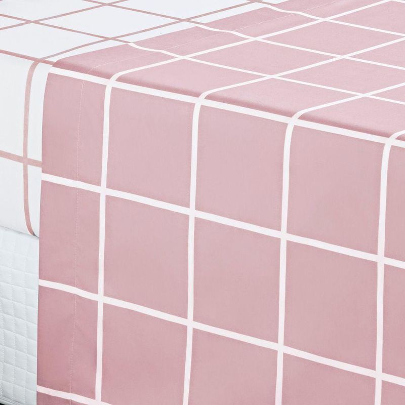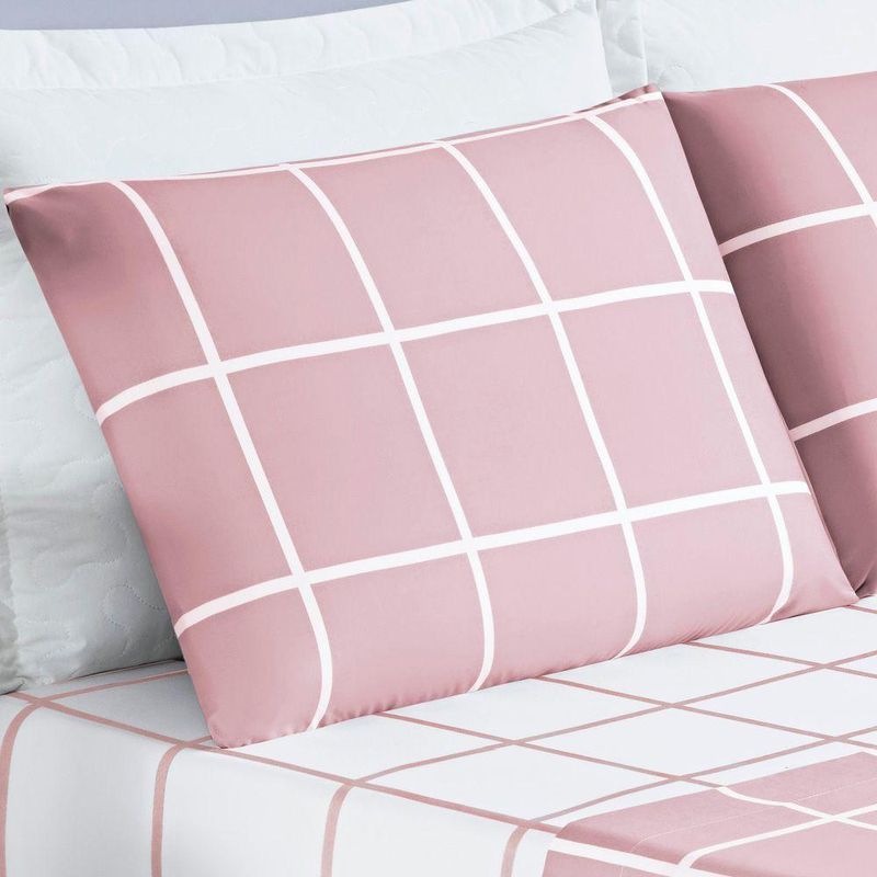 Jogo Cama Lençol Brooklyn Casal Quadriculado Micropercal 200 Fios 4 Peças - Rosa