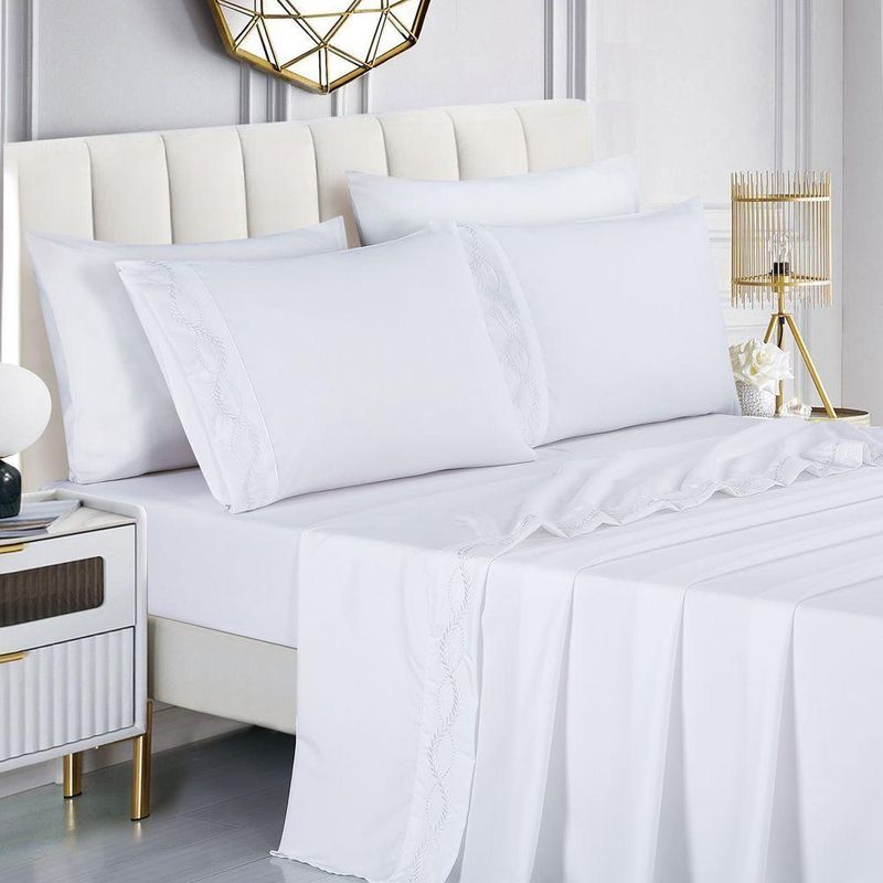 Jogo Cama Lençol Casa Scarpa Merit Casal Padrão Bordado Coroa De Louros Percal 300 Fios 4 Peças - Branco