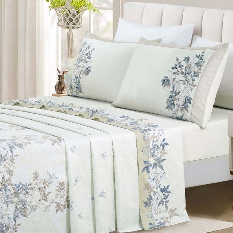 Jogo Cama Lençol Casa Scarpa Santorini King Estampa Florida Percal 300 Fios 4 Peças - Nude Outono